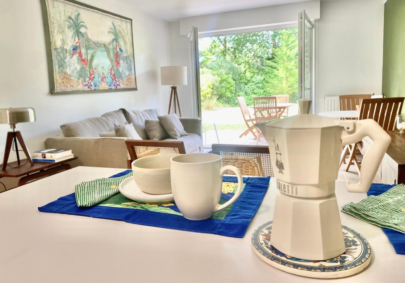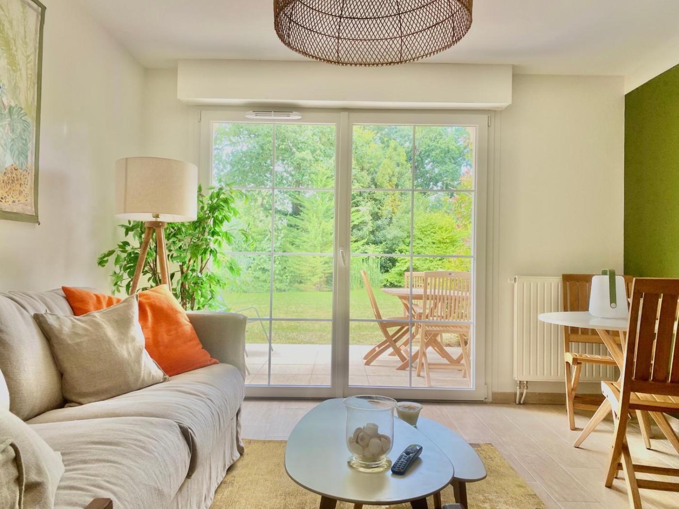 Appartement - Vue sur Jardin. This apartment is comprised of 1 living room, 1 separate bedroom and 1 bathroom with a shower and a hairdryer. The well-equipped kitchen features a stovetop, a refrigerator, kitchenware and an oven. Featuring a terrace with garden views, this apartment also offers a washing machine and a flat-screen TV with cable channels. The unit offers 2 beds.