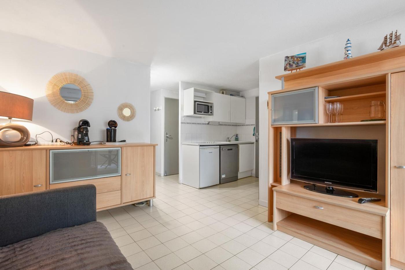 Appartement 1 Chambre. This apartment comprises 1 living room, 1 separate bedroom and 1 bathroom with a shower. In the fully equipped kitchen, guests will find a refrigerator, a dishwasher, kitchenware and an oven. The apartment provides a tea and coffee maker, a wardrobe, a sofa, heating, as well as a TV with cable channels. The unit offers 4 beds.