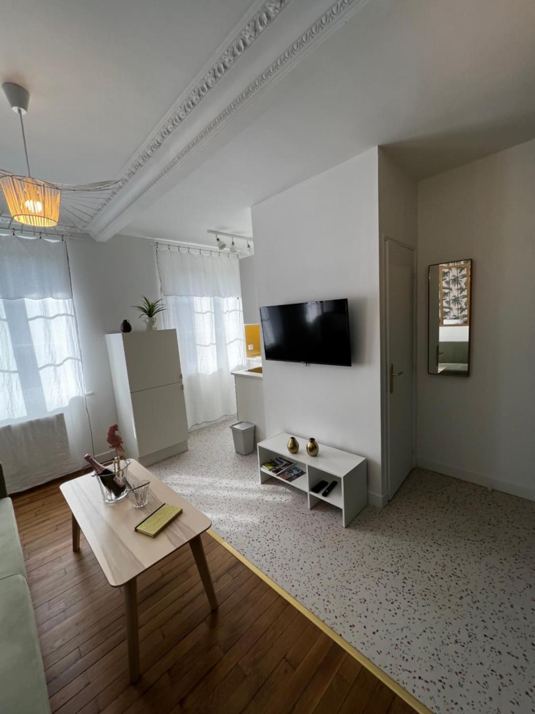 Appartement 1 Chambre. Guests can make meals in the kitchen that features a stovetop, a refrigerator, kitchenware and an oven. The apartment has parquet floors, a seating area with a flat-screen TV, a tea and coffee maker, a dining area as well as city views. The unit has 2 beds.