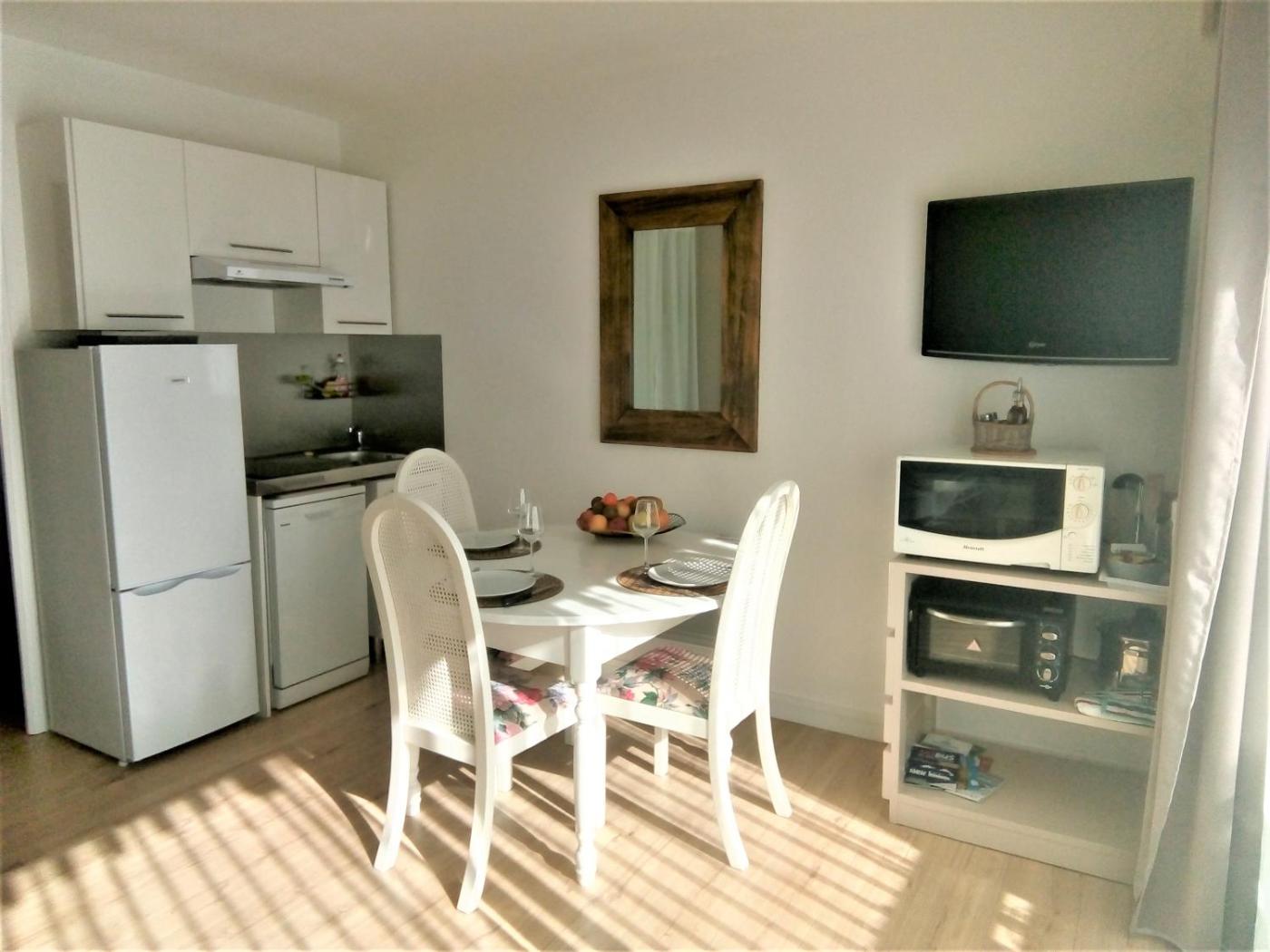 Studio. La cuisine est équipée de plaques de cuisson, d’un réfrigérateur, d’un micro-ondes et d’ustensiles. Doté d’une entrée privée, ce studio dispose dun plateaubouilloire ainsi que dune salle de bains privative avec baignoire et sèche-cheveux. Ce logement comporte 2 lits. ;
