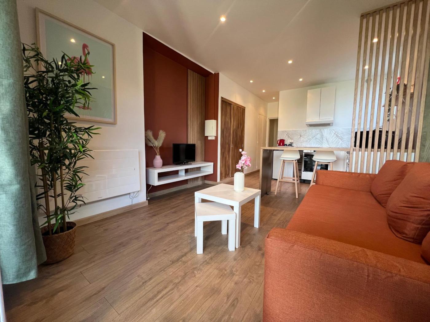 Appartement 1 Chambre - Vue sur Mer. The fireplace is the standout feature of this apartment. This apartment features 1 living room, 1 separate bedroom and 1 bathroom with a shower and free toiletries. The well-equipped kitchen has a stovetop, a refrigerator, a dishwasher and kitchenware. Boasting a terrace with sea views, this apartment also features a washing machine and a flat-screen TV. The unit has 2 beds.