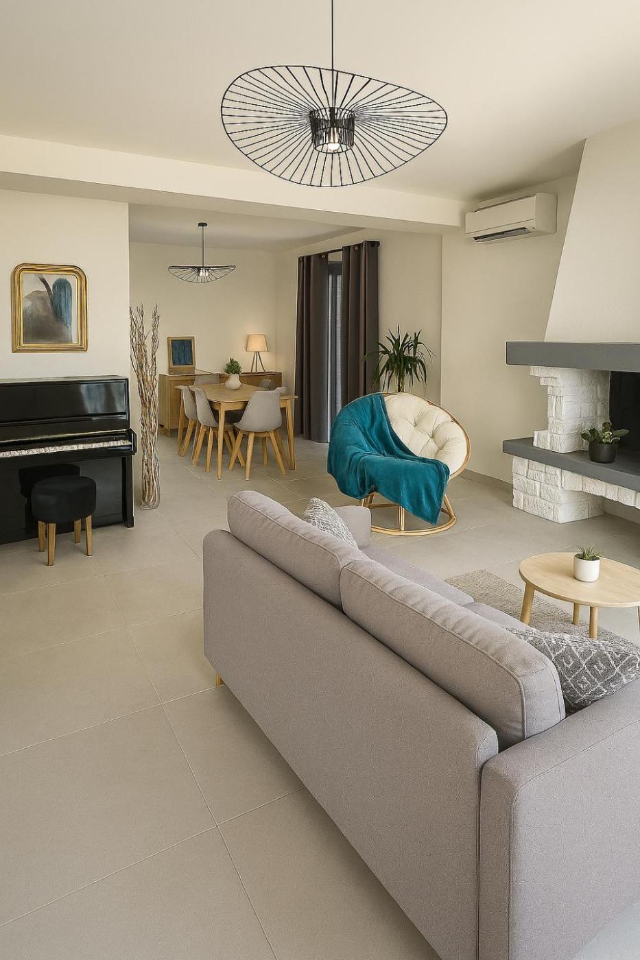 Cette maison de vacances avec climatisation se compose de 2 chambres, dun salon, dune cuisine entièrement équipée avec un réfrigérateur et une machine à café, ainsi que de 1 salle de bains avec une baignoire ou une douche. Une télévision à écran plat est disponible.