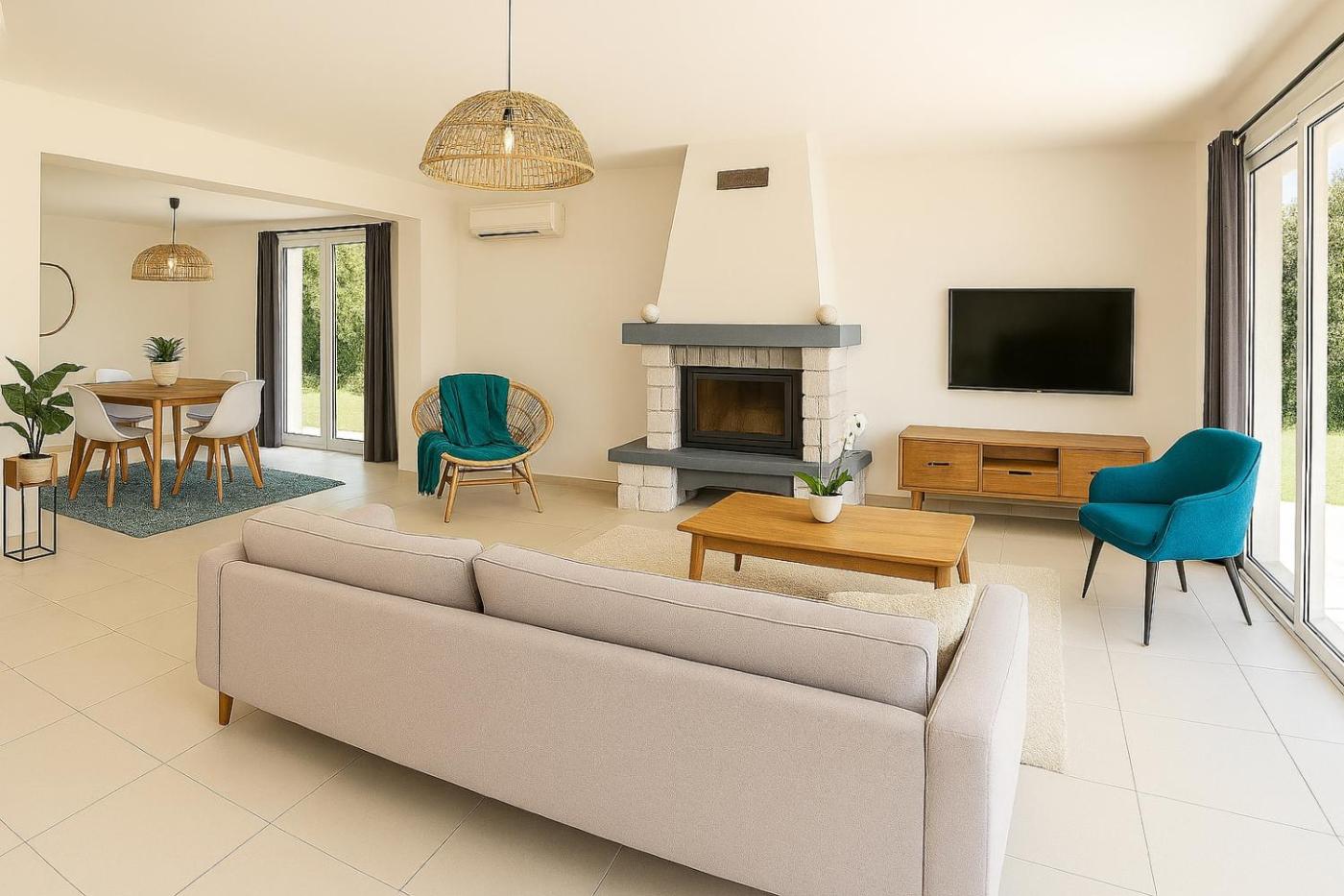 Maison 2 Chambres. Guests will have a special experience as this holiday home features a private pool. This air-conditioned holiday home is comprised of 1 living room, 2 separate bedrooms and 1 bathroom with a bath or a shower. Guests will find a stovetop, a refrigerator, a dishwasher and kitchenware in the fully equipped kitchen. The holiday home also has a barbecue. Featuring a terrace with garden views, this holiday home also offers a washing machine and a flat-screen TV. The unit offers 2 beds.
