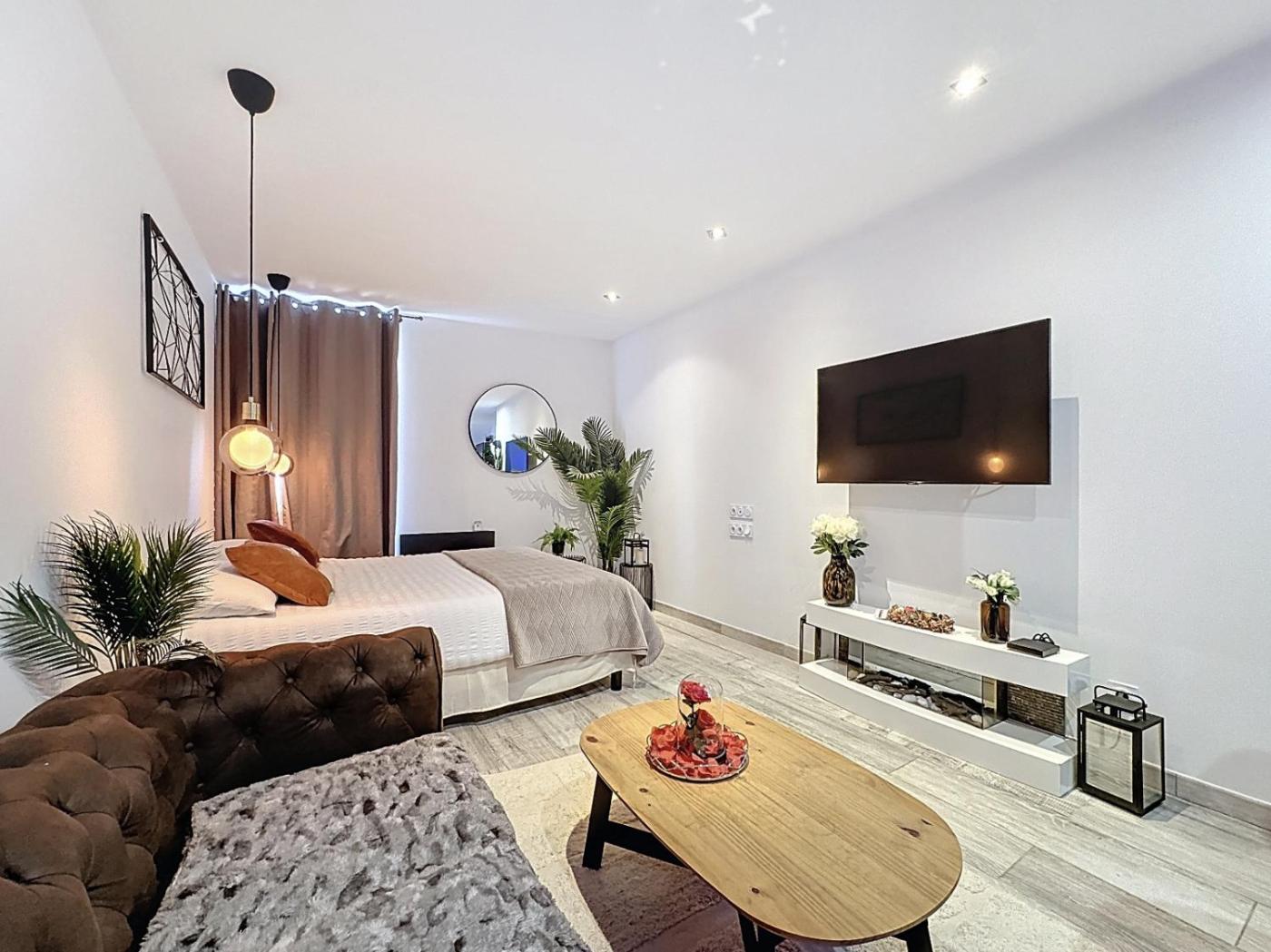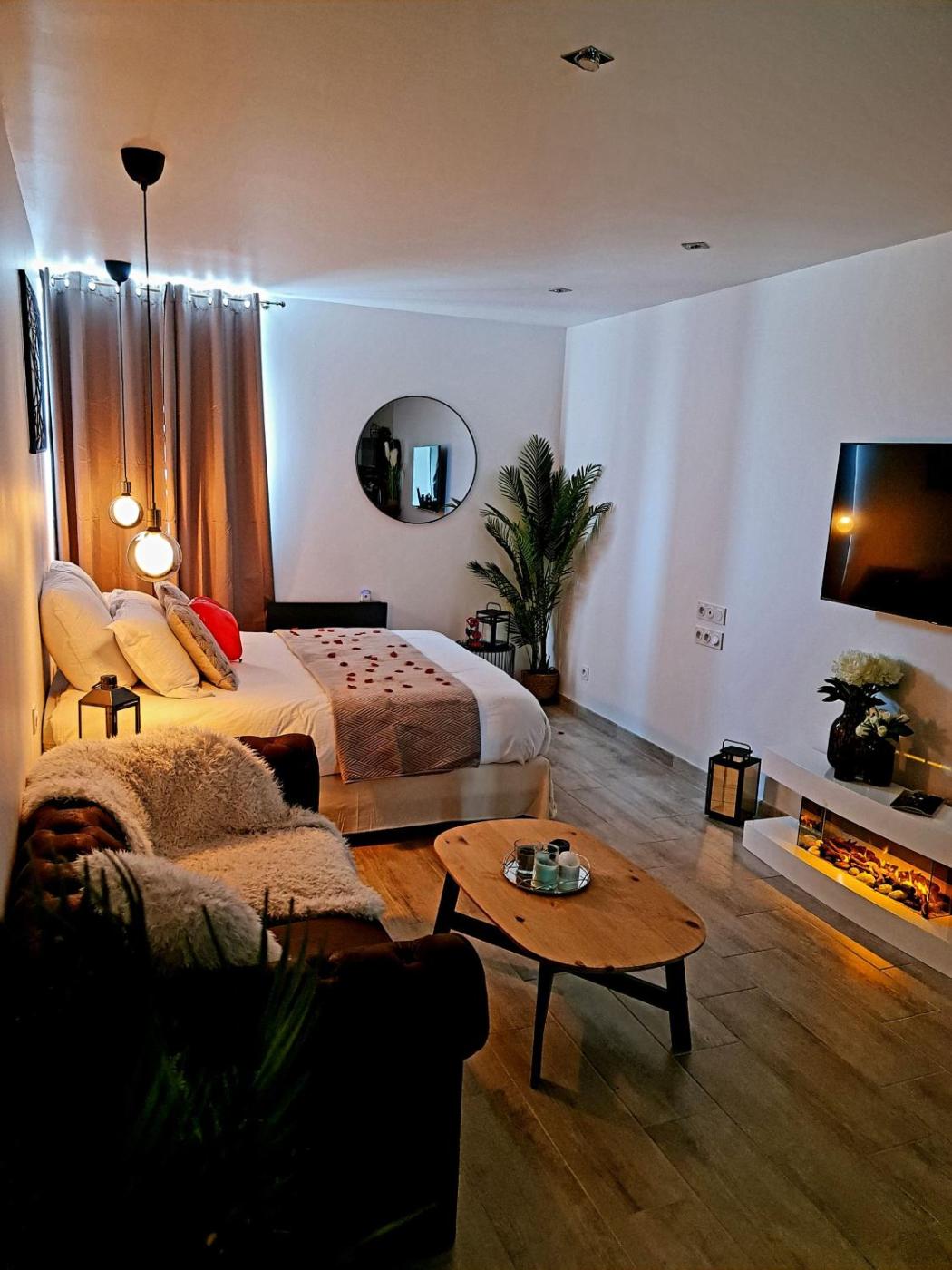 Appartement 1 Chambre. This apartment features a hot tub and a spa bath. Guests can make meals in the kitchen that features a stovetop, a refrigerator, kitchenware and a microwave. This apartment has a private entrance, a minibar, flat-screen TV with streaming services, as well as chocolate for guests. The unit has 1 bed.