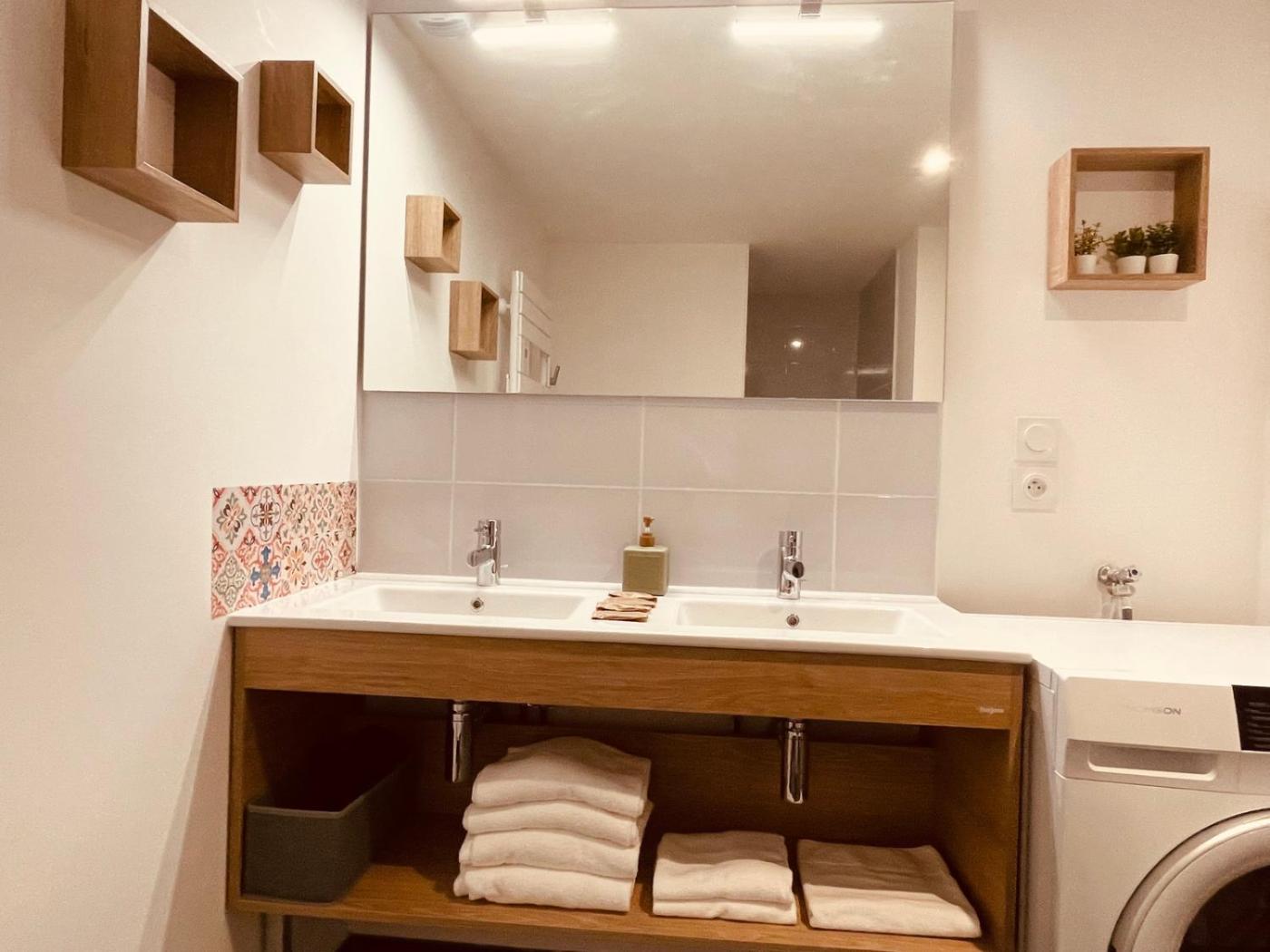 Appartement 2 Chambres. Boasting a private entrance, this spacious apartment also features 1 living room, 2 separate bedrooms and 1 bathroom with a shower. In the fully equipped kitchen, guests will find a stovetop, a refrigerator, a dishwasher and kitchenware. Featuring a balcony, this apartment also features a washing machine, a coffee machine and a flat-screen TV. The unit has 3 beds.