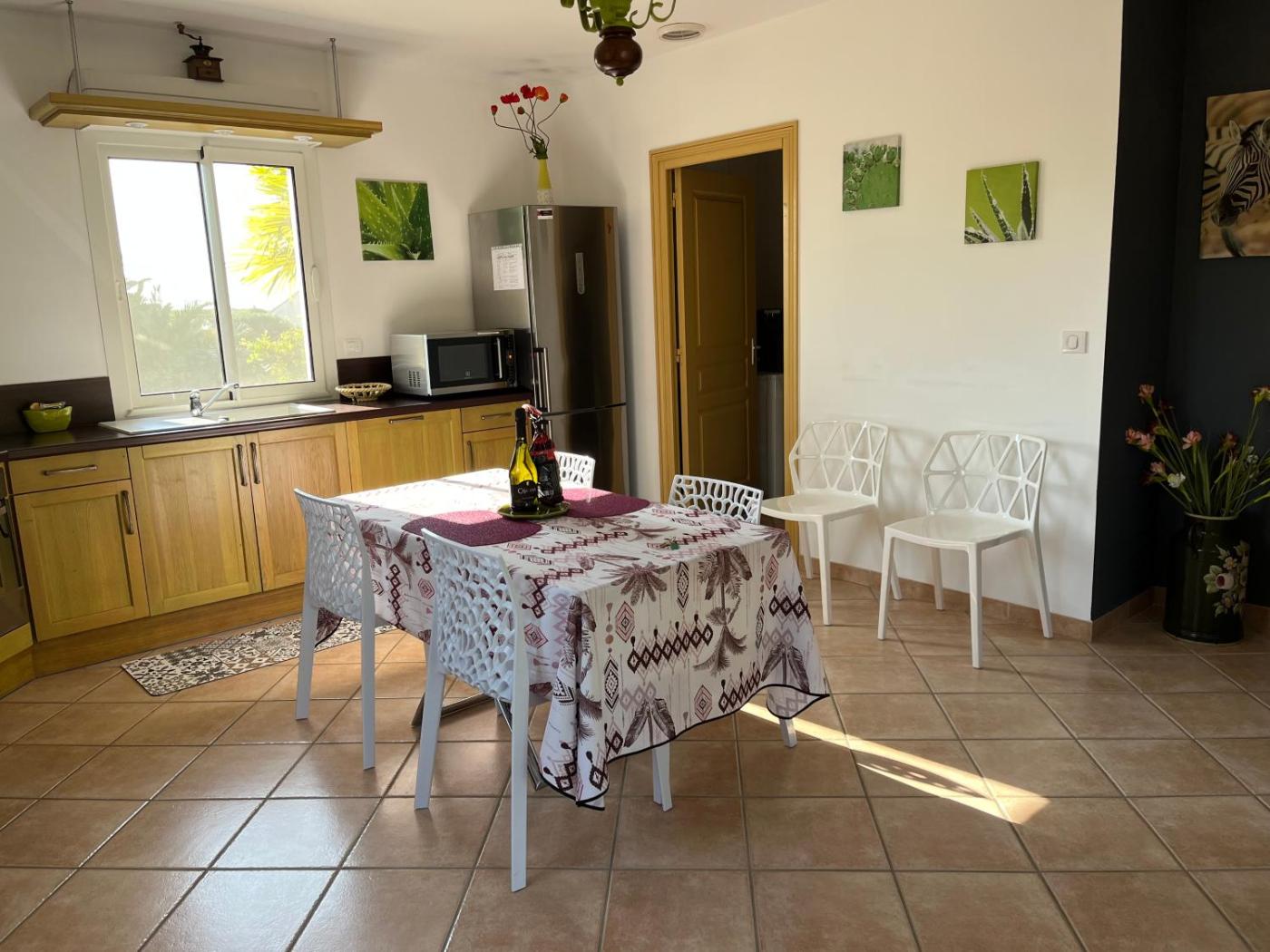 Maison 2 Chambres. This holiday home features a private pool. Featuring a private entrance, this holiday home comprises 1 living room, 2 separate bedrooms and 2 bathrooms with a shower and a hairdryer. Guests will find a stovetop, a refrigerator, a dishwasher and an oven in the fully equipped kitchen. The holiday home also provides guests with a barbecue. Boasting a terrace with garden views, this holiday home also provides a washing machine and a flat-screen TV with cable channels. The unit offers 4 beds.