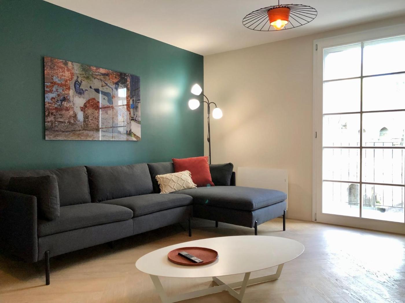 Appartement 2 Chambres. This apartment consists of a kitchen, a seating area, 2 separate bedrooms and 1 bathroom with a shower and a hairdryer. Guests can make meals in the kitchen that is equipped with a stovetop, a refrigerator, a dishwasher and an oven. The apartment provides a flat-screen TV, a washing machine, soundproof walls, a coffee machine as well as city views. The unit offers 2 beds.